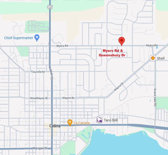 At that time Jaden Flores (20) of Celina was driving a 2009 Honda Civic eastbound on Myer Rd and attempted to turn north onto Queensbury St. In doing so Flores inadvertently turned in front of Crouch and the two collided.