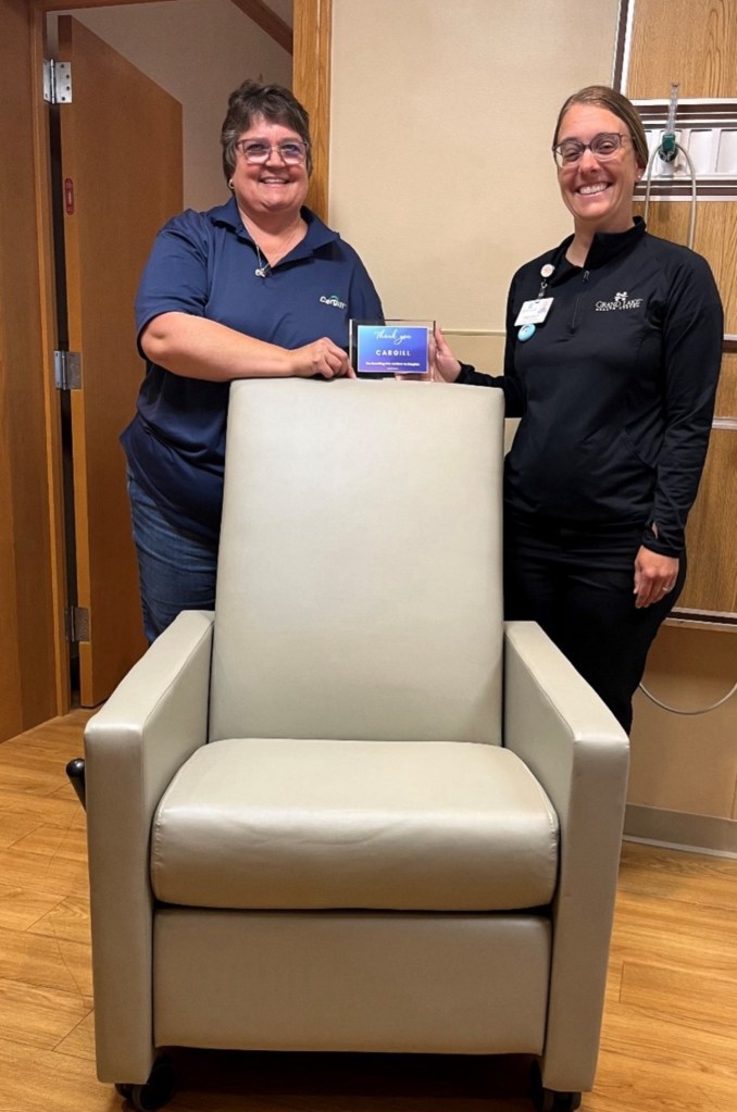 (7-1-24) Grand Lake Hospice is delighted to announce the receipt of a new recliner from Cargill, St. Marys. Cargill, St. Marys contribution has been further amplified by a matching donation from the JTD Hospital Foundation, doubling the impact on our hospice comfort suite.