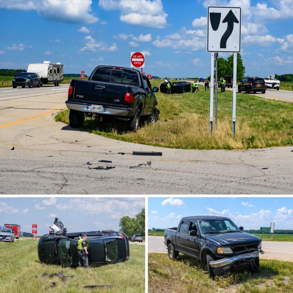 A 2001 Ford F150 driven by Reed Missler of York Township was northbound on Mendon Road, stopped at the stop sign at US 30 then proceeded to try to cross the eastbound lane and struck a 2016 Honda Civic driven by Mollie Losh of Putnam County that was eastbound on US 30. This collision caused Losh to go into the median and rollover several times before coming to rest on the driver’s side.