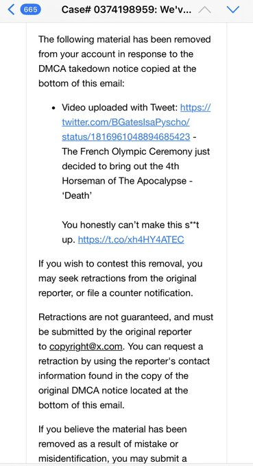 NBC and the Olympic Committee asked that the video be removed from ‘X’ Accounts. No statement on why they decided to ask for this.