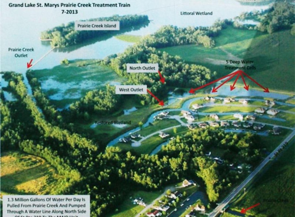 The funds are needed to restore the barrier and maintain functionality at the Prairie Creek Treatment Train, which removes the runoff nutrients that contribute to algal blooms from Prairie Creek’s waters before they enter Grand Lake St. Marys.