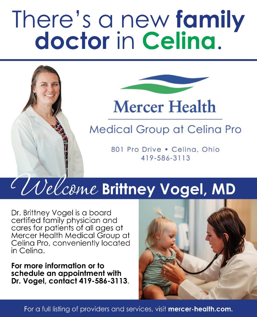 Dr. Vogel joins the team of primary care providers at Mercer Health Medical Group’s Celina Pro location, which includes Marisa Spoltman, PA, and Nancy Wolters, CNP.