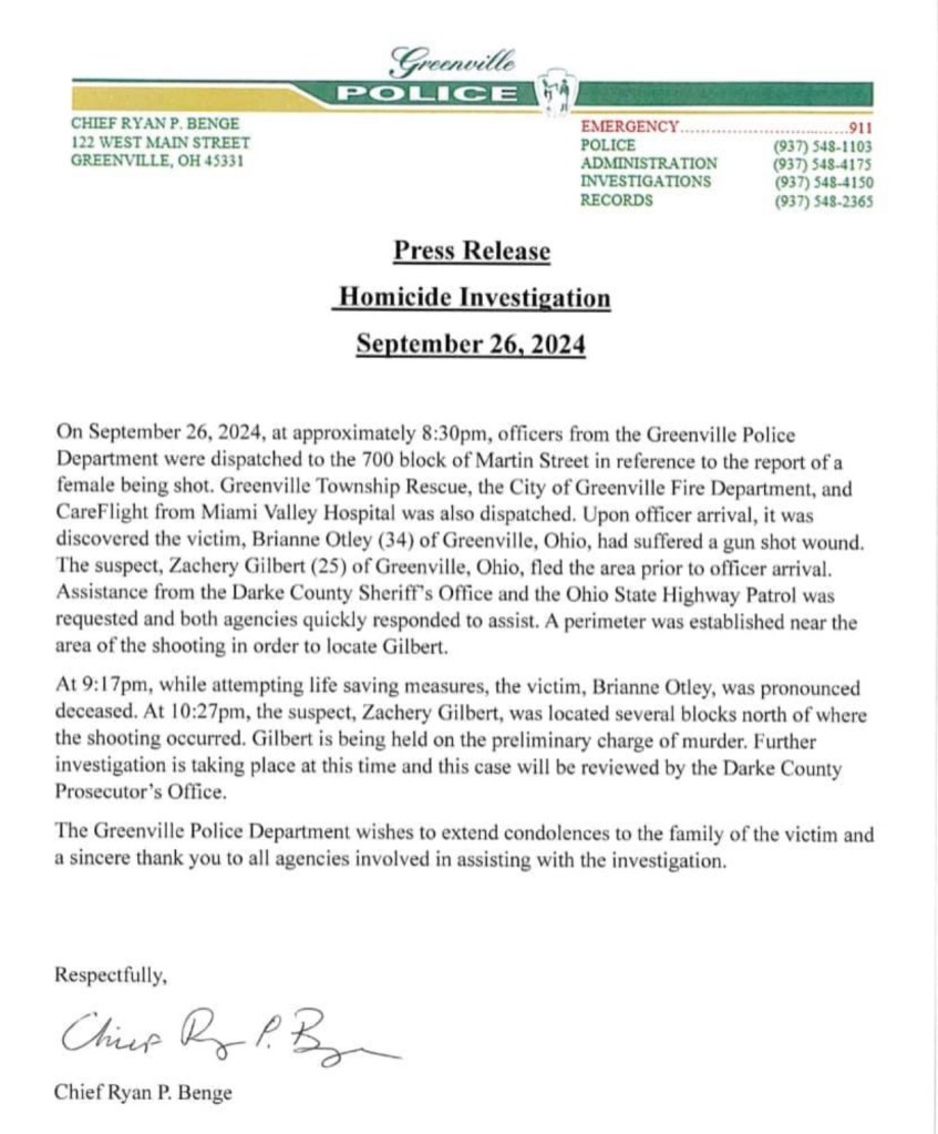 (9-26-24) Greenville residents are being asked to remain in their homes as police continue their search for a suspect in a shooting tonight on Martin Street that left a woman with a stomach wound. Her condition is unknown.