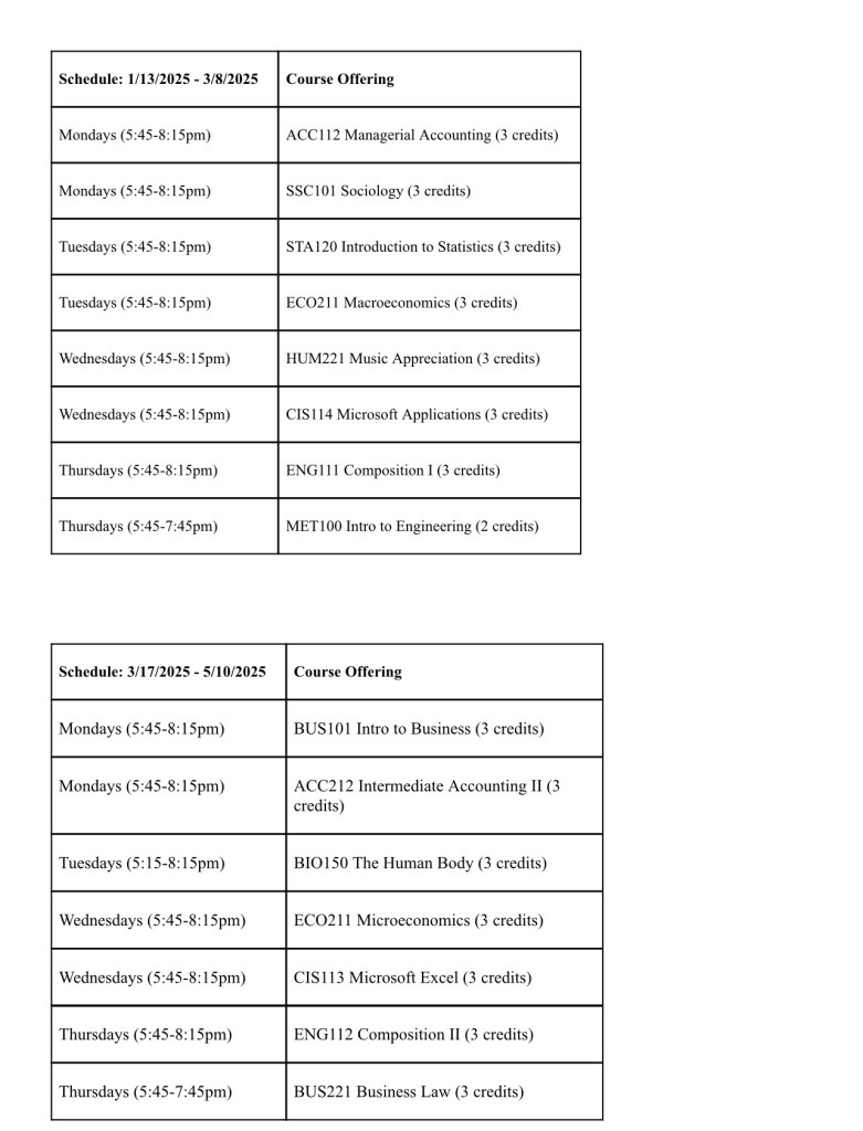 Our onsite class offerings allow you to enter several career pathways – Business, Computer Systems, Industrial Tech, and Bachelor’s Bound (i.e. those looking to ultimately transfer to a 4-year university). Classes are available for all student groups, including traditional aged college students, non-traditional/part-time students, students looking to transfer credit back to their home university, workforce development and upskilling, and college credit plus/dual enrollment.