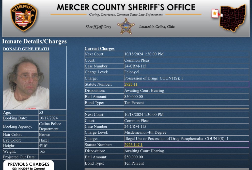 (10-18-24) Brian Dull (41) of Celina and Donald Health (53) of Union City, Indiana were both arrested on drug related charges.