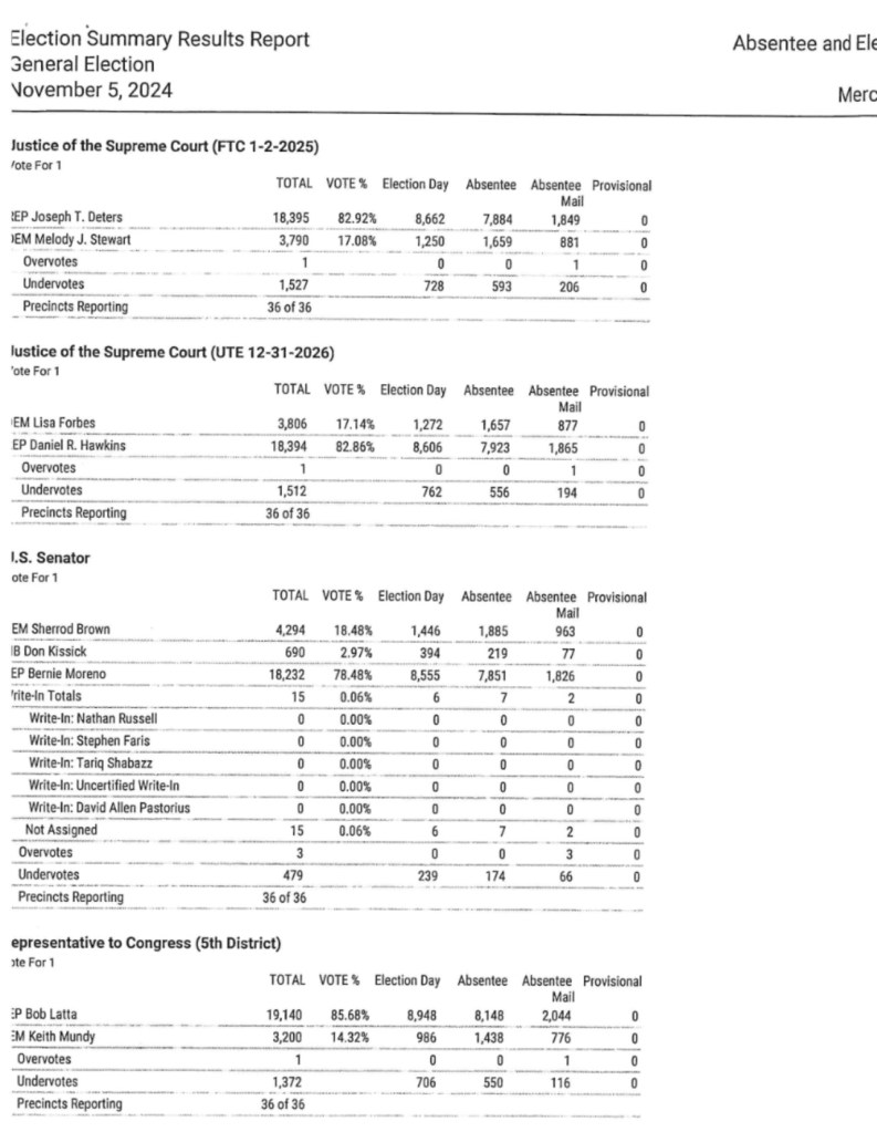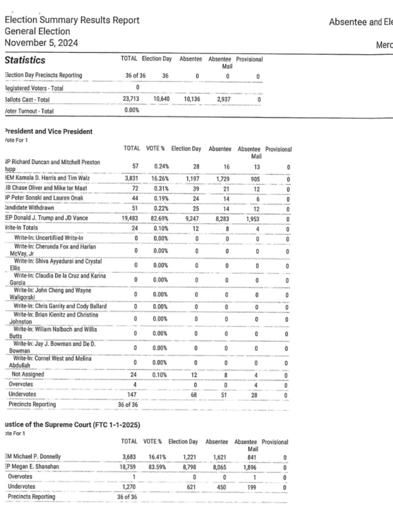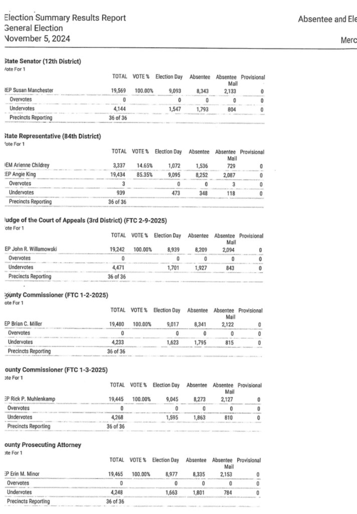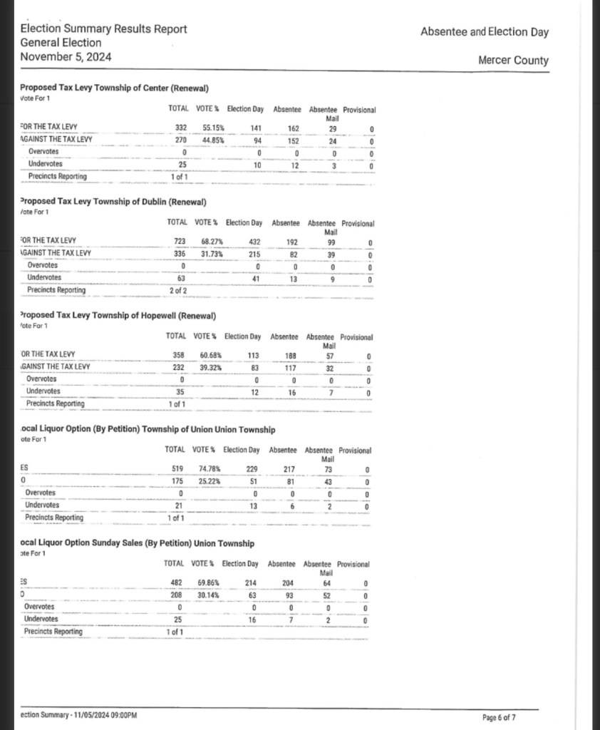 (11-5-24) Mercer County Board of Elections November 2024 voting results for Mercer County.