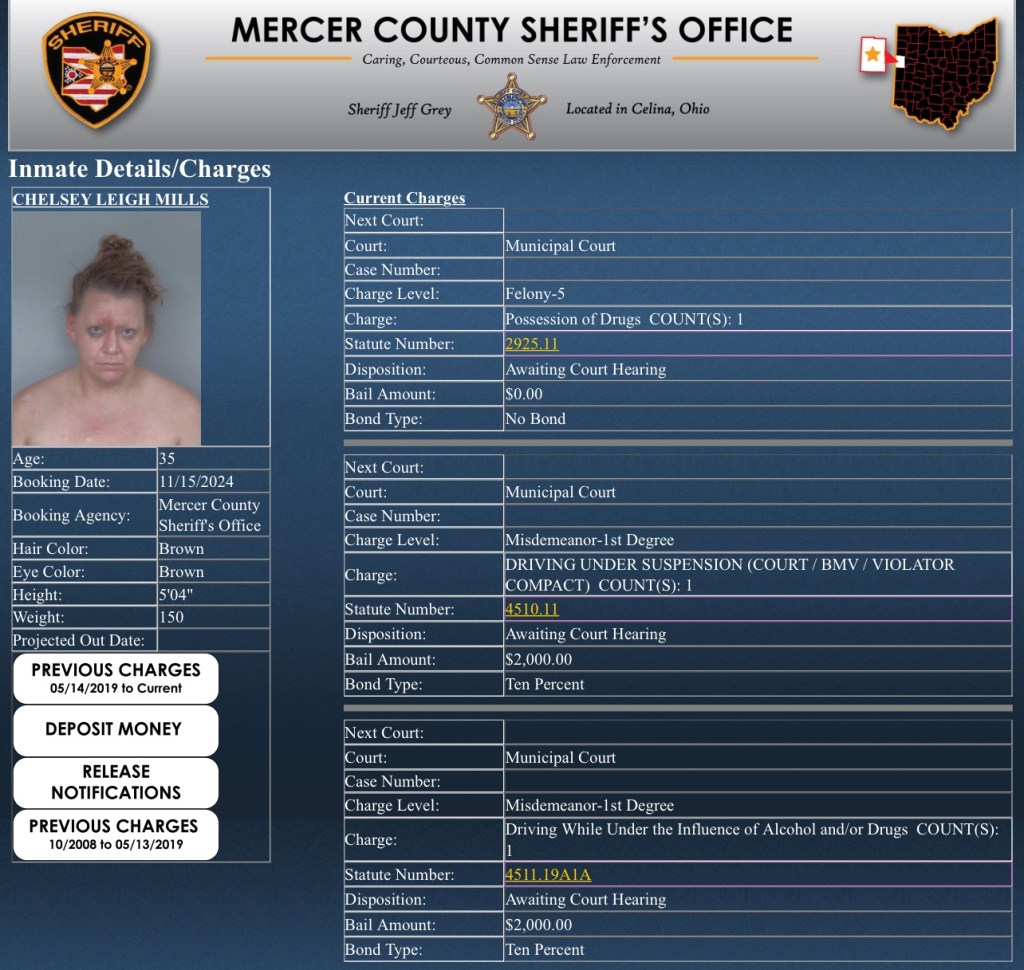 (11-15-24) Chelsey Mills (35) of Celina was booked today into the Mercer County Adult Detention Center.