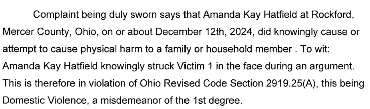 (12-13-24) Yesterday the Rockford Police arrested Amanda Hatfield (48) on a 1st degree misdemeanor charge of domestic violence, 2nd degree misdemeanor of criminal damaging endangerment and a 2nd degree misdemeanor of resisting arrest.