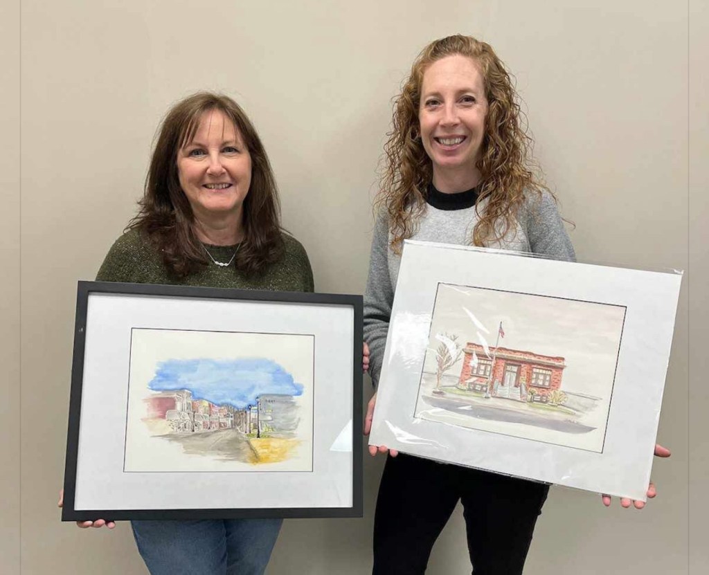 (1-17-25) The Rockford Carnegie Library staff and board members would like to thank Tammy Pontsler and family for graciously donating the “My Hometown – Rockford, Ohio” watercolor series for permanent display. Tammy’s late husband, Jeff Pontsler, was a man with many talents and a love for his community.
