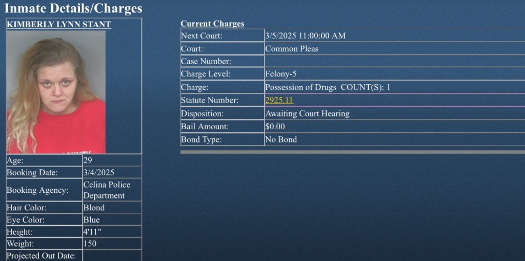 Allen County Common Court– (March 25, 2022) Kimberly Stant, 26, of Delphos, aggravated possession of drugs.