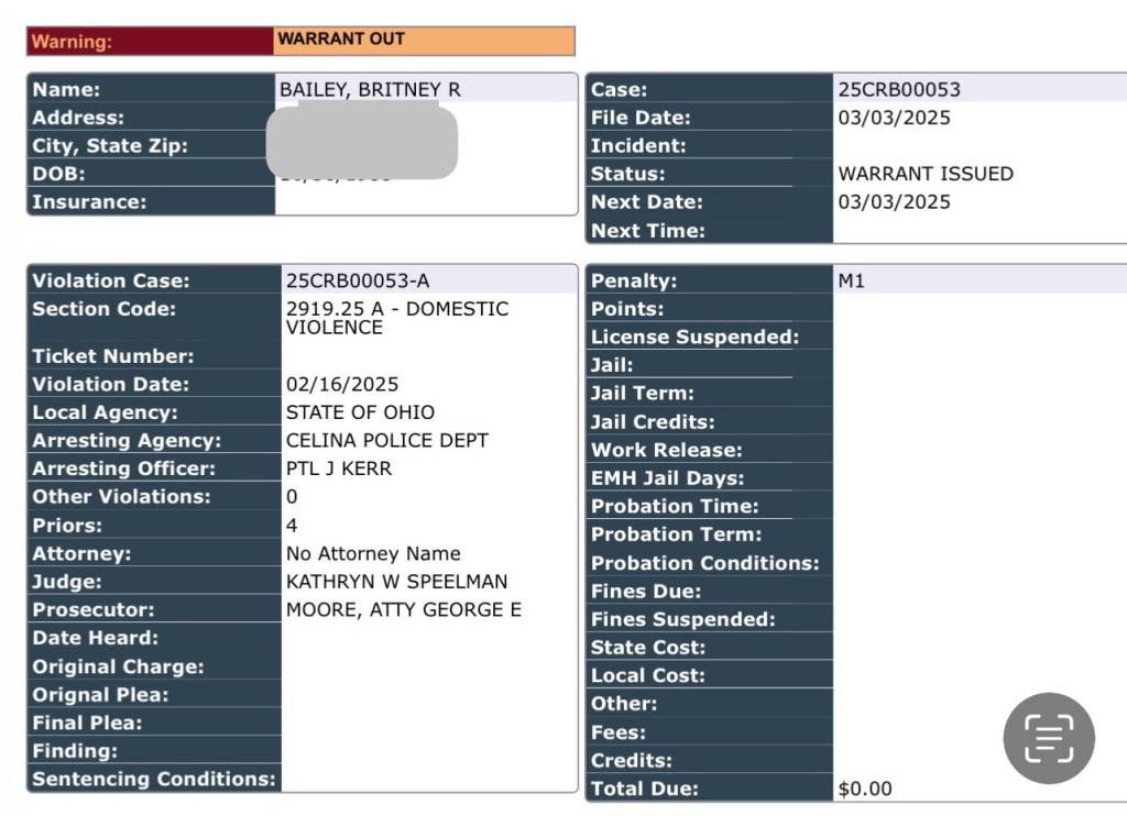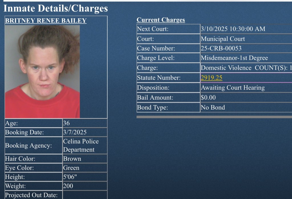 (3-8-25) Ralph Bailey (42) and Britney Bailey (36), who both list the same Celina address, were booked into the Mercer County Adult Detention Center with no bond by Celina Police on misdemeanor domestic violence charges yesterday.