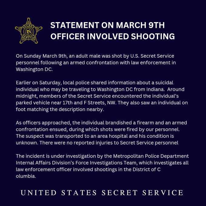 Secret Service members found the man’s parked vehicle around midnight and saw a man on foot matching the description nearby. Dawson was armed with a gun and a knife. one. Dawson was shot close to the Eisenhower Executive Office Building….one block away from the West Wing.