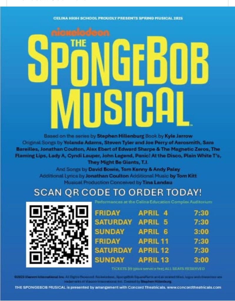 Celina High Spring Musical 2025 presents, The SpongeBob Musical. The SpongeBob Musical is based on the beloved animated series created by Stephen Hillenburg.