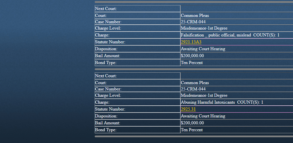 Megan is awaiting a court hearing at the Mercer County Common Pleas Court, while Dustin is awaiting a Celina Municipal Court Hearing.