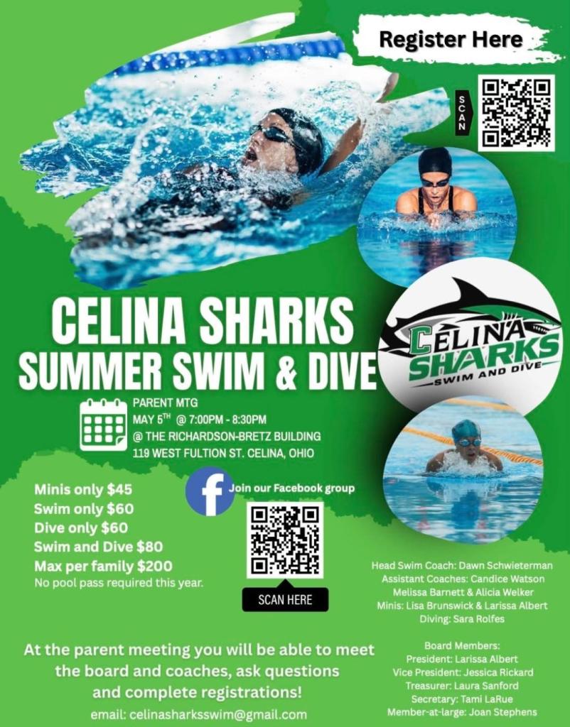 You can also join our Facebook page “Celina Sharks Swim and Dive” for information as it comes out!