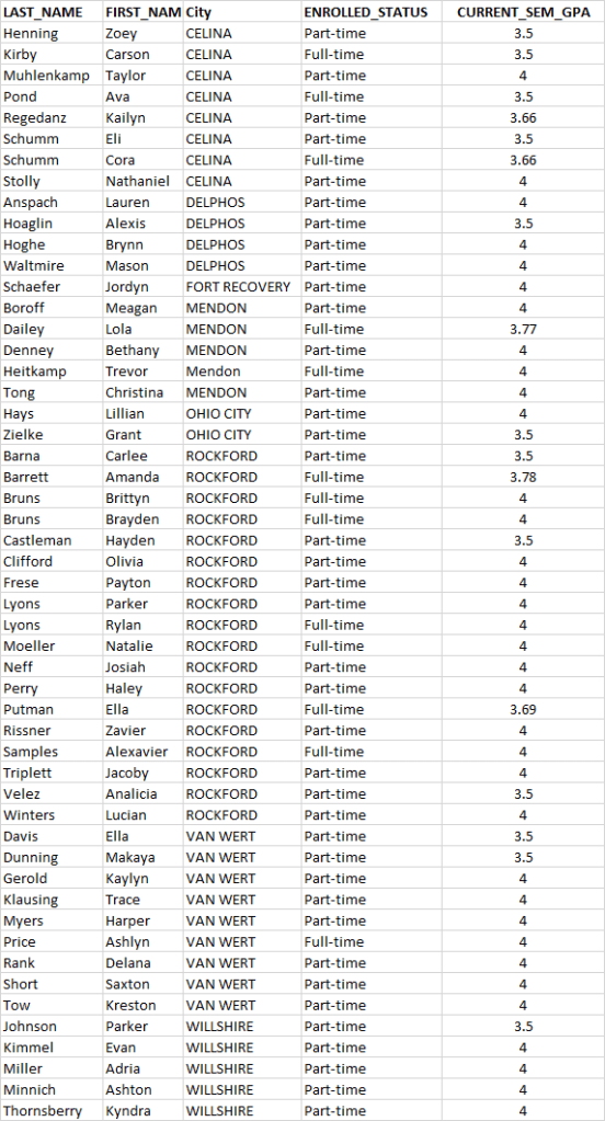 ARCHBOLD, OHIO (5-24-25) – Northwest State Community College has announced its spring semester dean’s list. To be eligible, students must have taken at least 12 credit hours as a full-time student, or 6-11.99 as a part-time student, and have averaged above a 3.5 GPA on a 4.0 scale.
