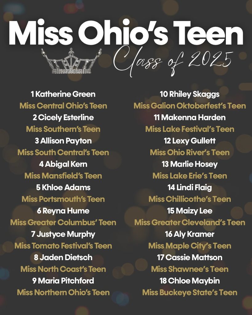 (6-19-25) Last night in Mansfield a new Miss Ohio’s Teen was crowned, Allison Payton. Payton, who was Miss South Central’s Teen is from Chillicothe, won a $2,500 scholarship.