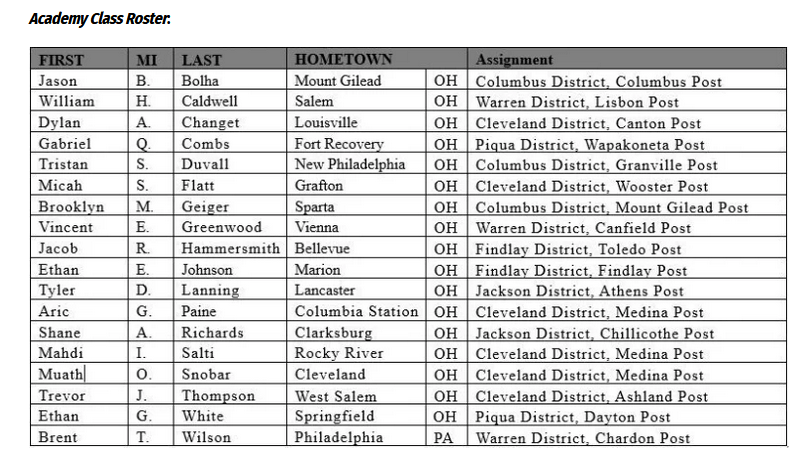 (6-23-25) This past Friday, the Ohio State Highway Patrol’s 176th Academy Class graduated from the Ohio State Highway Patrol Training Academy after 28 weeks of intense training.