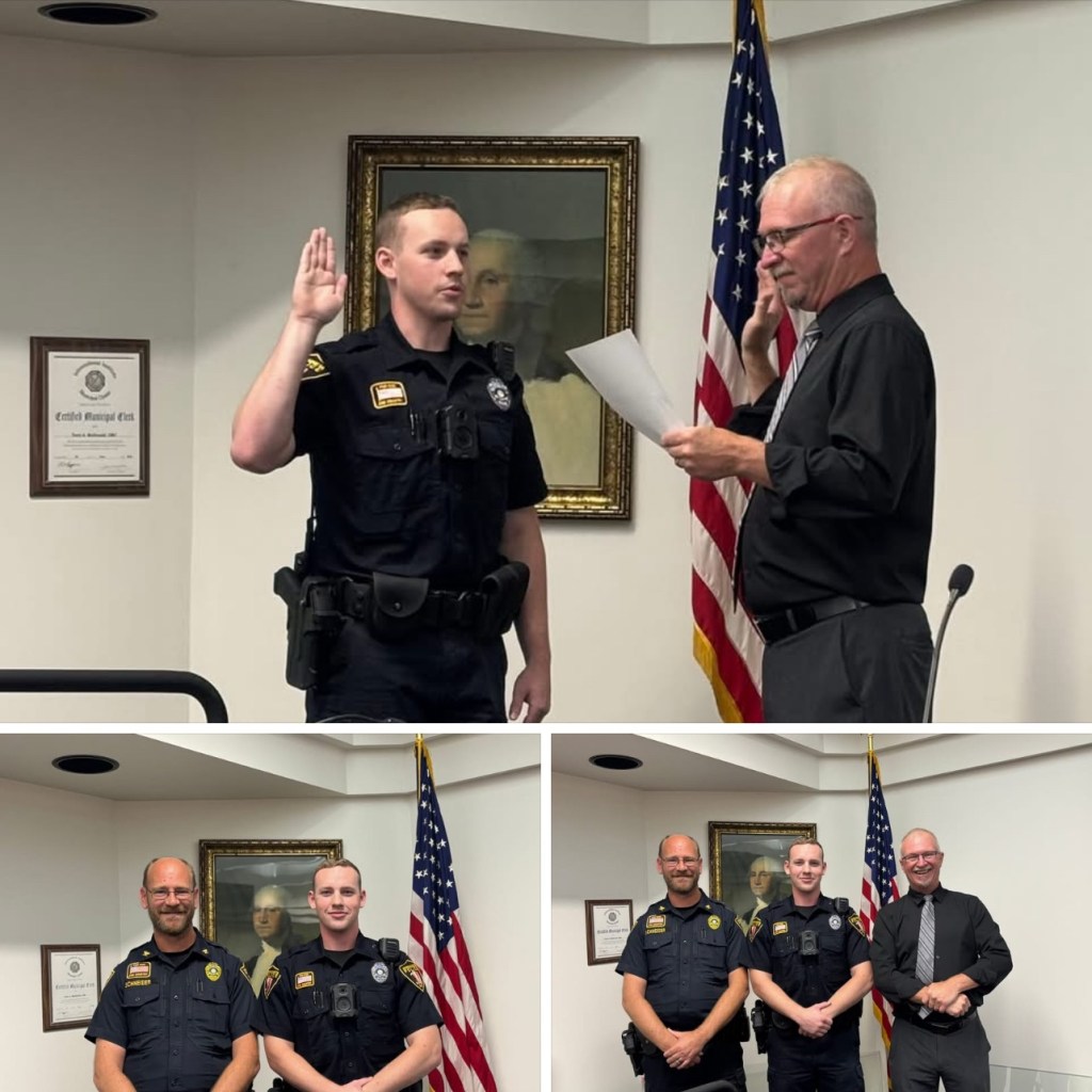 (7-16-25) This morning, Jack Boos took the oath of office as the newest Wapakoneta Police Patrol Officer, administered by Mayor Dan Lee at a ceremony held at City Hall.