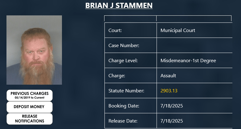 (7-18-25) Brian Stammen (45) f St. Henry was arrested on a 1st degree misdemeanor assault charge early this morning. He is now out of custody.