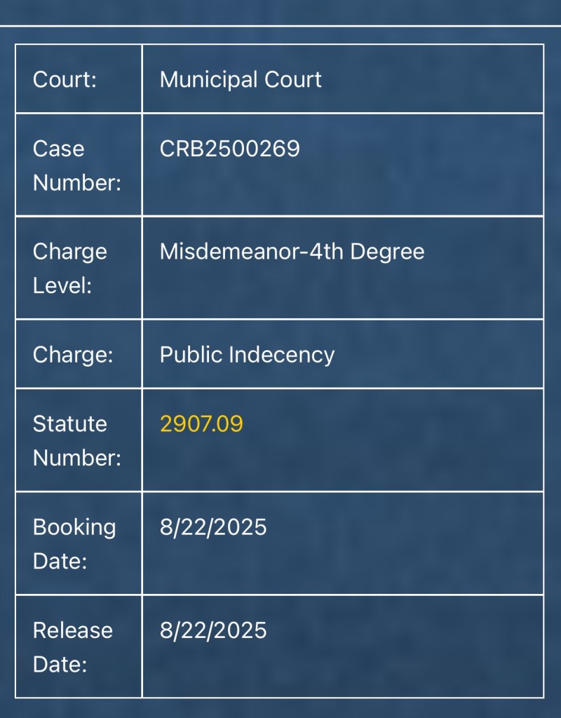 (8-23-25) Ethan Springer (30) was charged with a 4th degree misdemeanor of public indecency. The incident took place on August 7th.
