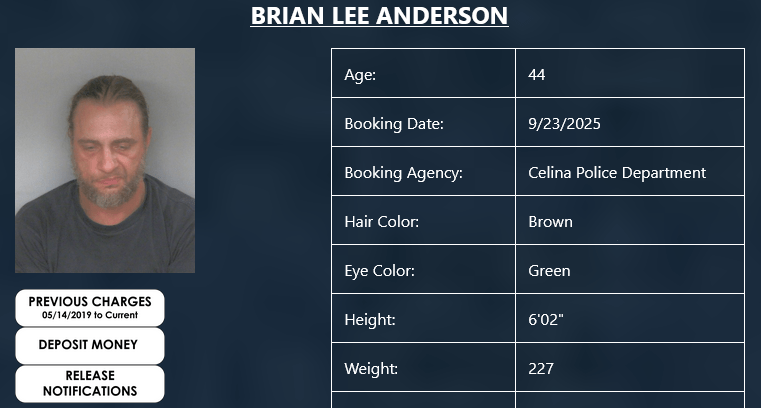 Brian Anderson (44) of Celina was booked by the Celina Police Department on a 4th degree misdemeanor of disorderly conduct persistent. He is being held on $500 (10%) bond.