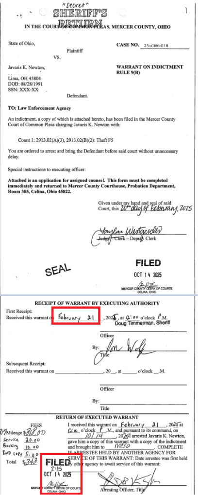 (10-15-25) Javaris Newton (34) was booked by the Mercer County Sheriff’s Department on a 5th degree felony of theft, deception.