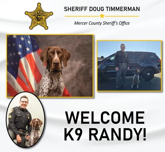 (10-15-25) Please join us in welcoming the newest member of the Mercer County Sheriff’s Office – K9 Randy! Randy is a German Short-haired Pointer.
