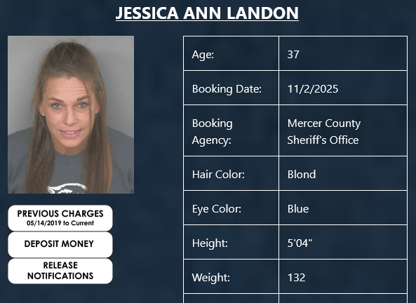 Jessica Landon (37) was booked by the Mercer County Sheriff’s Department on tampering with records, illegal use of food stamps or WIC program benefits (individual).