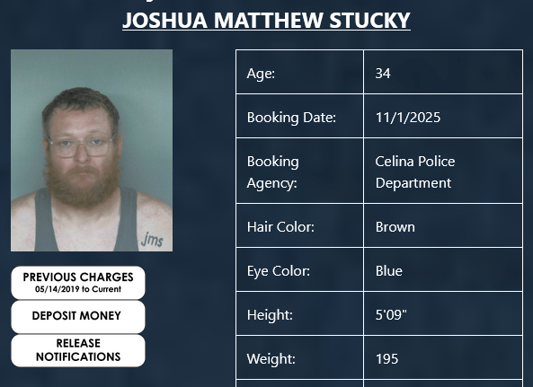 Joshua Stucky (34) was booked by the Celina Police Department on a 1st degree misdemeanor of aggravating menacing.