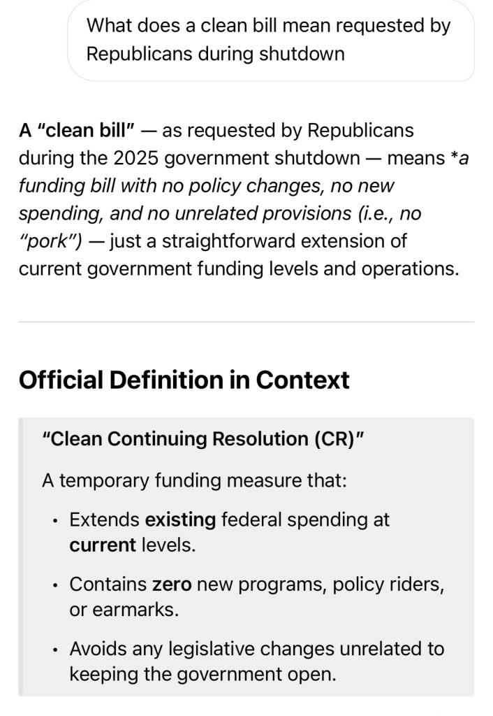 “We sent 15 clean CRs to the Senate. Every single one was blocked by Chuck Schumer because Democrats wanted to sneak in billions for their liberal pet projects. That’s not negotiating — that’s extortion.”