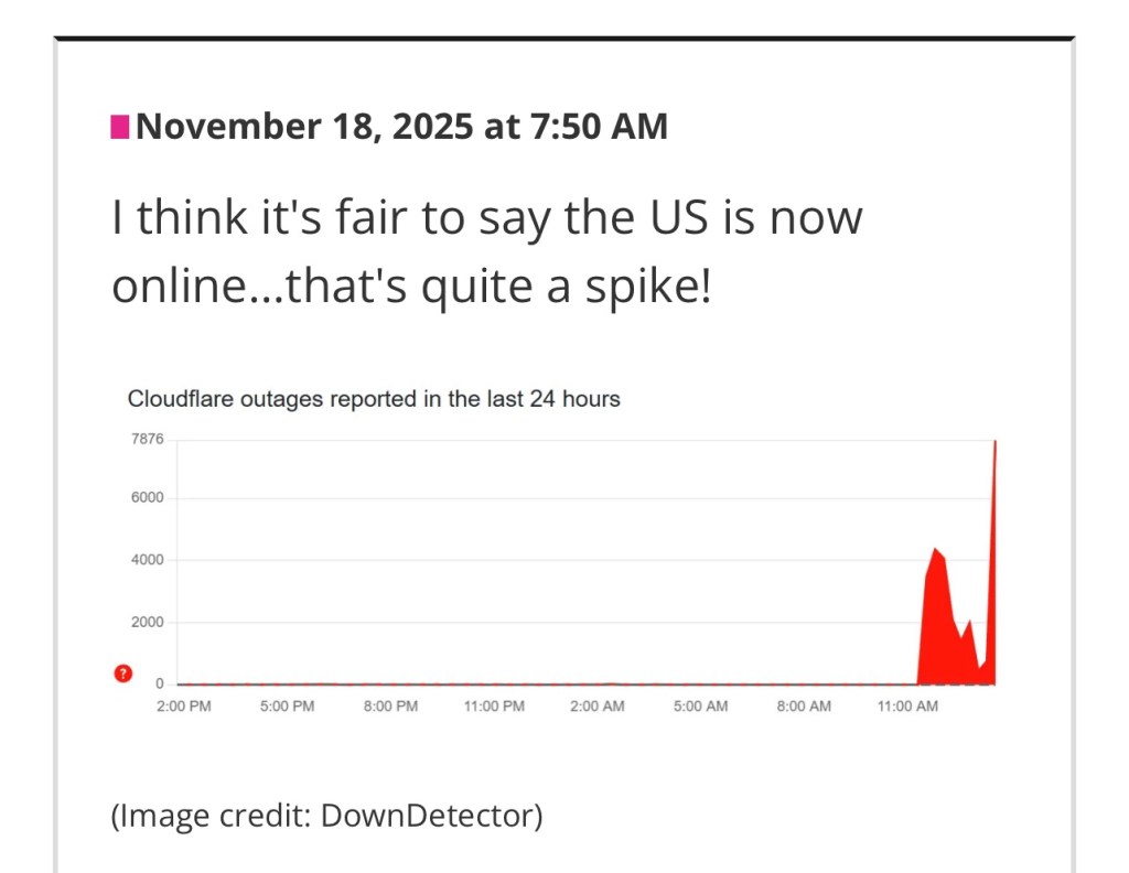 (11-18-25) Large parts of the internet are struggling to load right now following an issue at Cloudflare.
