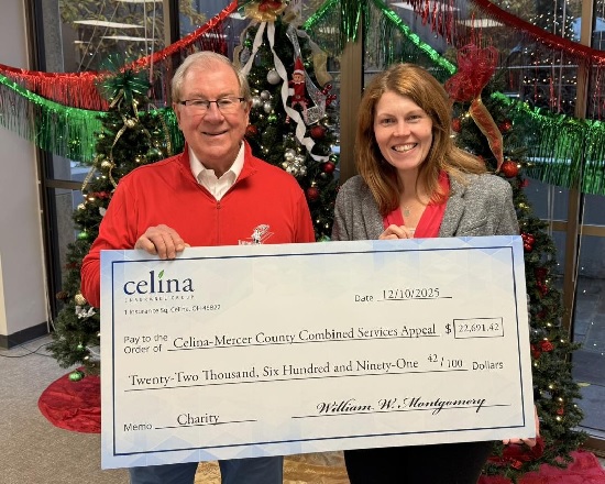 CELINA, Ohio, Dec. 11, 2025— Celina Insurance Group and its employees recently donated $22,691 to the Celina-Mercer County Combined Services Appeal. The funds will benefit local programs, many of which depend on donation