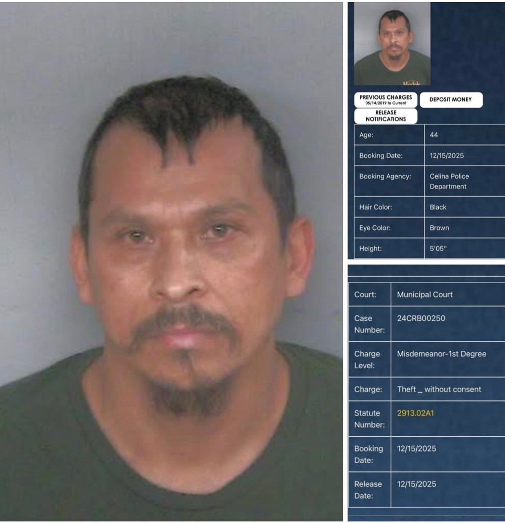 (12-17-25) Sidronio Gomez-Marchan (44) of Celina was booked on a 1st degree misdemeanor charge of theft without consent.