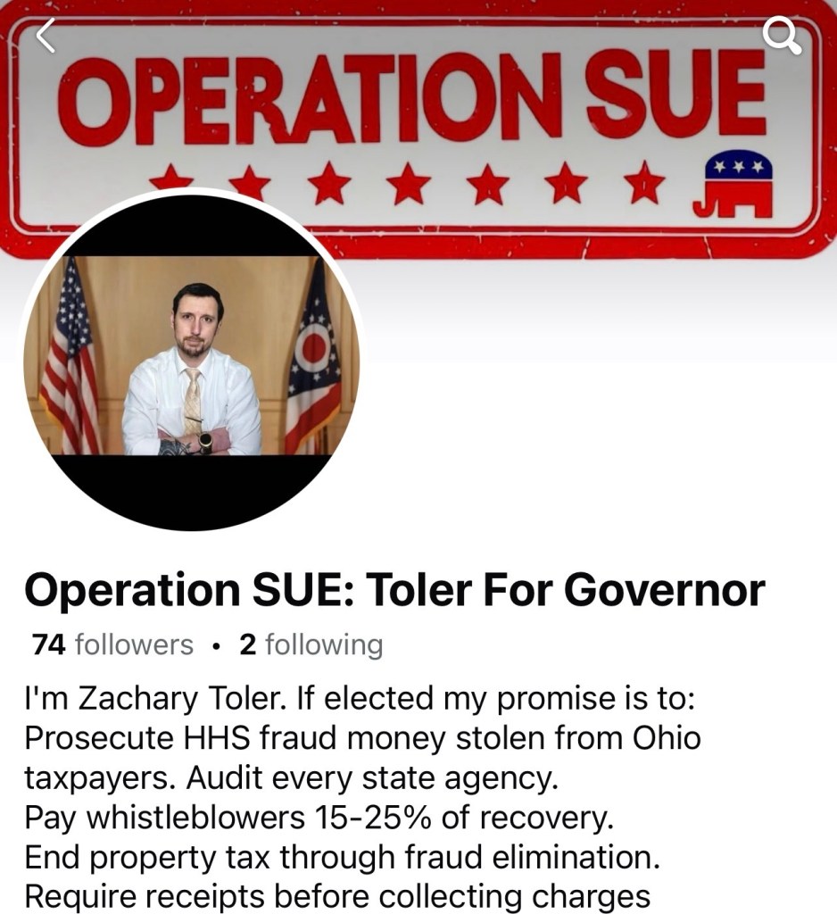 I’m Zachary Toler, Protective Father, Federal Whistleblower, Republican Candidate for Governor of Ohio.
