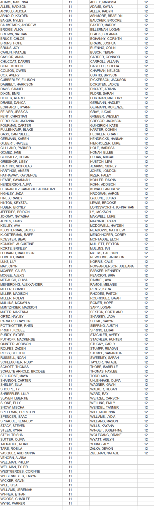 (1-13-26) Celina High School Honor Roll (3.0 – 4.0 GPA standing) for Quarter 2. The classes used to accumulate the GPA standing to produce the Honor Roll are classes taken at Celina High School. Consequently, College Credit Plus classes are not figured into this grade.