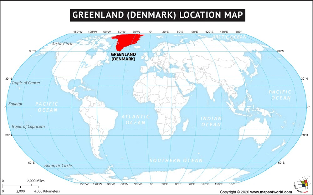 Here are the key maps showing Greenland’s position relative to North America, Europe, and the Arctic (note how large it truly appears when not distorted by common map projections):