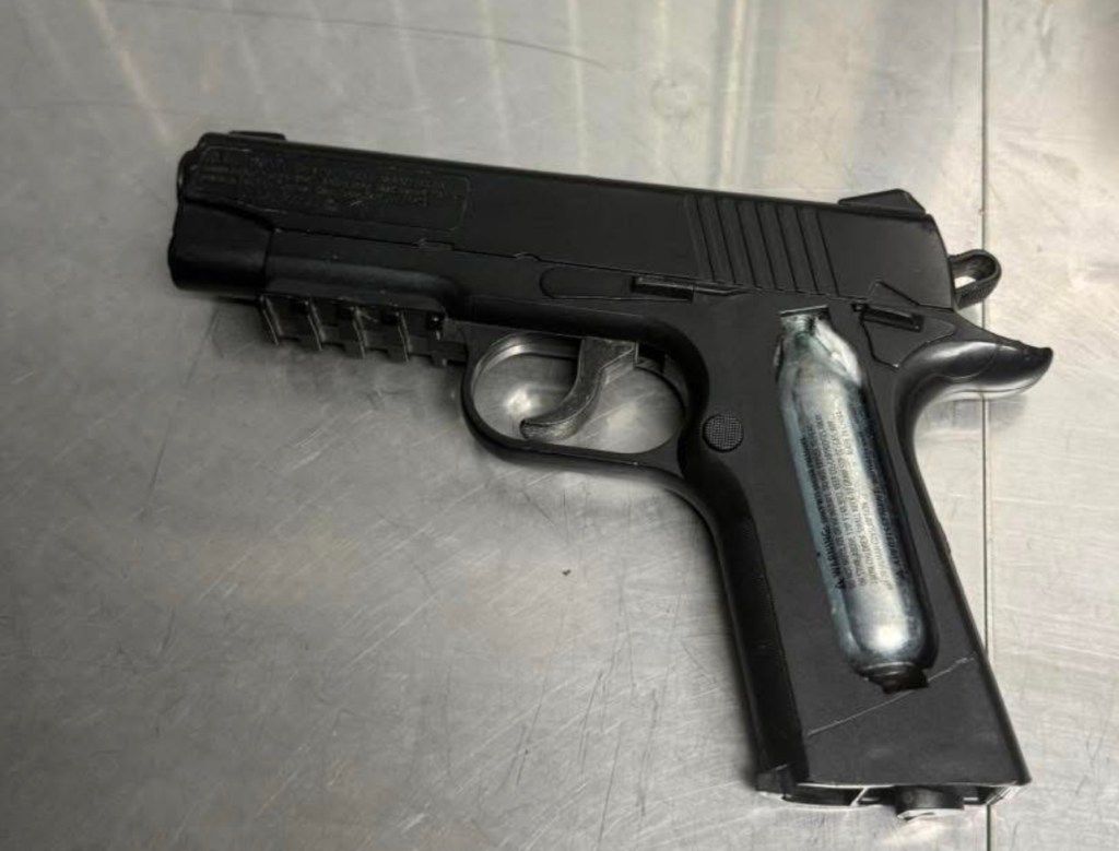 During a subsequent search of the residence, officers located a black firearm matching the description provided. Further investigation determined the item to be an airsoft gun designed to closely resemble an actual firearm.