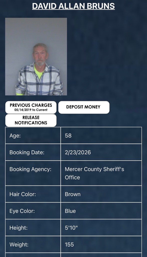 (2-24-26) David Bruns (58) of Celina and Denise Bruns (52) of Celina were both booked by the Mercer County Adult Detention Center on 1st degrees misdemeanor of domestic violence.