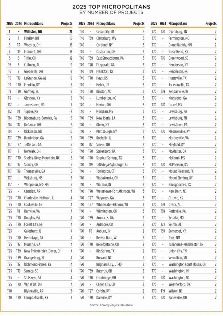 Van Wert’s ranking places it among strong company statewide. Ohio communities dominated the micropolitan rankings, with Findlay (No. 2), Wooster (No. 3), Fremont (No. 4), and Tiffin (No. 5) all finishing in the top five. In total, 20 Ohio micropolitan communities placed in the Top 100, collectively attracting 114 projects.