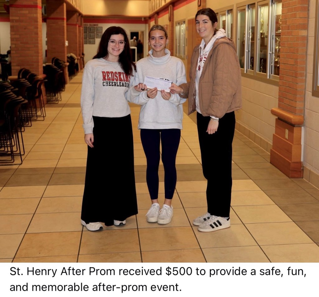 - St. Henry High School After Prom; $500 to provide a safe, fun, and memorable after prom event