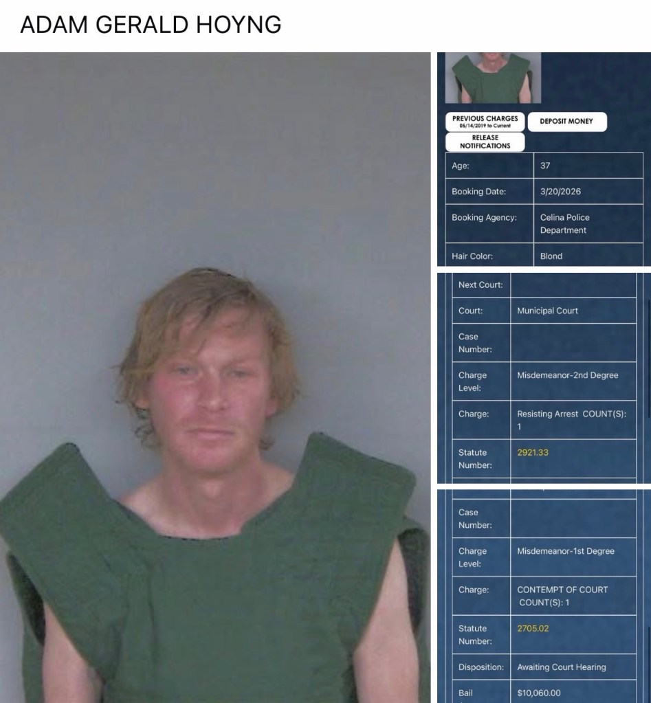 Adam Hoyng (37) was booked on contempt of court and resisting arrest misdemeanor charges.