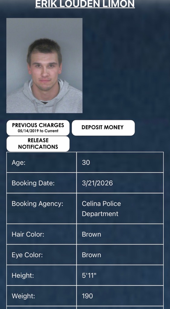 Erik Limon (30) of Celina was booked on a 1st degree misdemeanor of domestic violence …with no bond.