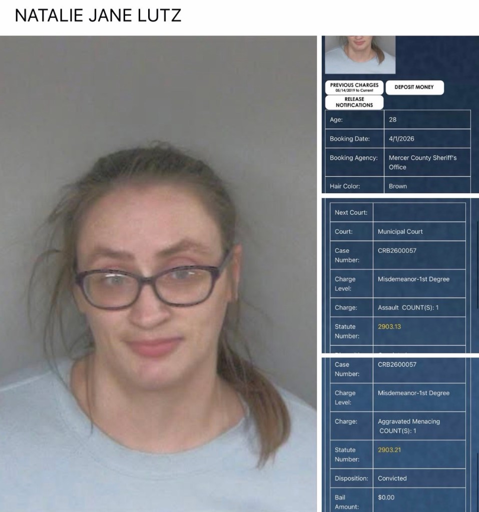 Natalie Lutz (28) was booked on a 1st degree misdemeanor of assault and a 1st degree misdemeanor of aggravated menacing.