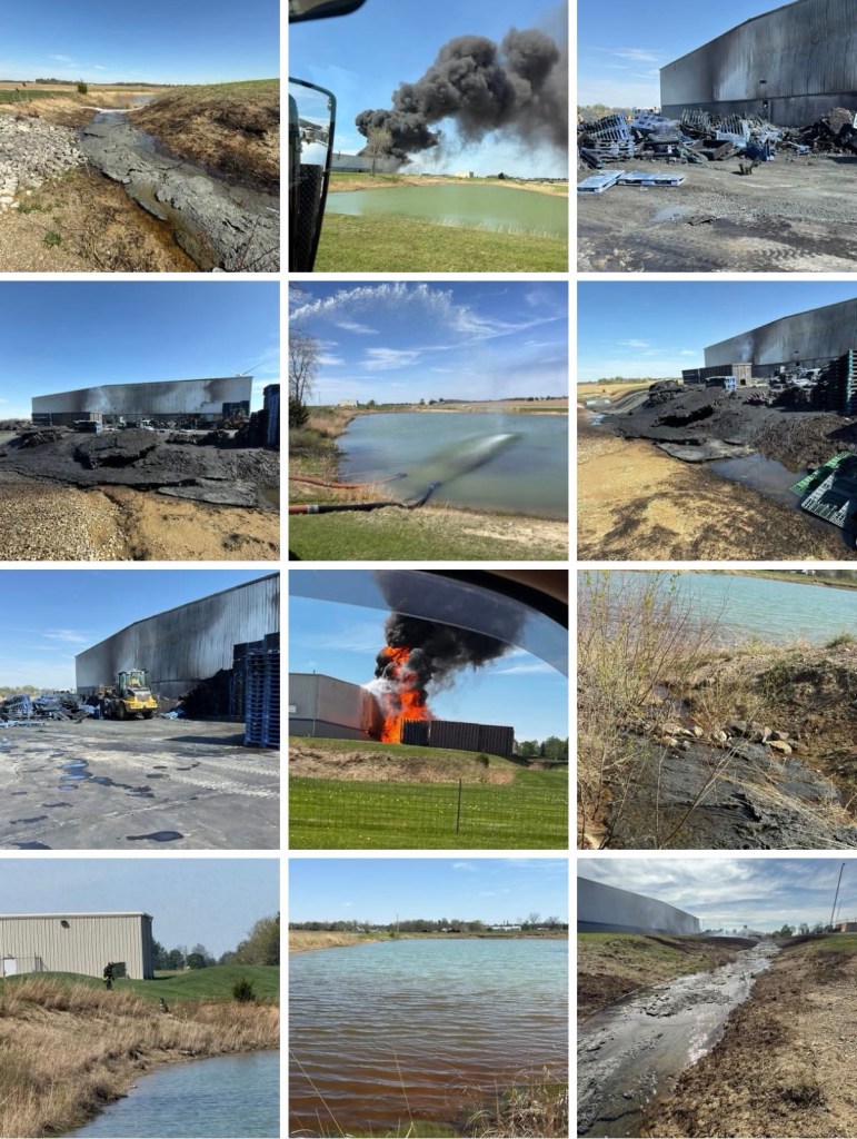 There cause of the fire is under investigation. Extensive remediation of the environmental damage will occur after the fire investigation is complete. The Indiana Department of Environmental Management (IDEM), Indiana Department of Natural Resources (IDNR), the Indiana Fire Marshal’s Office, and the Indiana Department of Homeland Security (IDHS) were notified. Each agency has some investigative authority or, with IDHS, provides situational awareness to stakeholders.