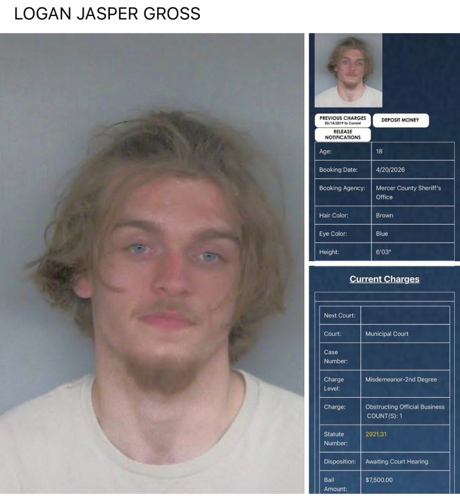 Logan Gross (18) was booked on a 2nd degree misdemeanor of obstructing of official business.