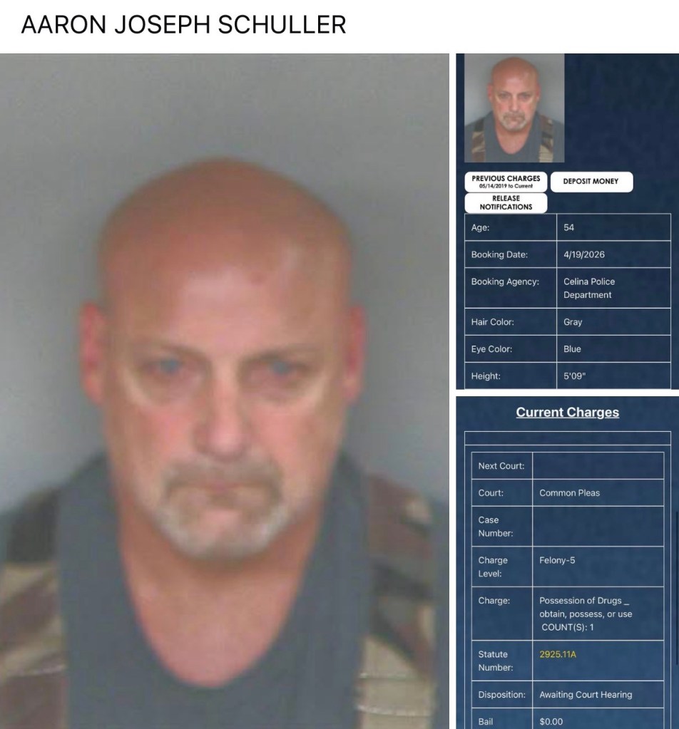 Aaron Schuller (54) was booked on a 5th degree felony of possession of drugs.