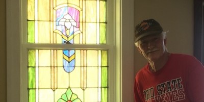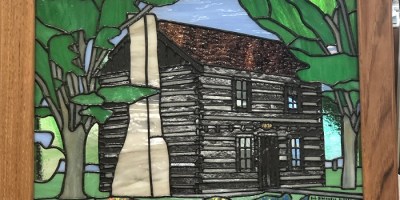 Stained Glass Picture Of Anthony Shane Log Cabin Donated To Shanes Crossing Historical Society